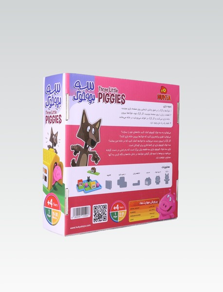 بازی سه بچه خوک یک بازی پازلی و فکری است که براساس داستان معروف سه بچه خوک و گرگ طراحی شده است. در هر مرحله، کودک باید خوک ها را طبق چالش مشخص روی صفحه قرار دهد و سپس با استفاده از قطعات خانه، آن ها را یا بیرون خانه بگذارد یا درون خانه پنهان کند تا از گرگ در امان باشند. هر معما تنها یک راه حل درست دارد و پاسخ ها در دفترچه بازی آمده اند. سطح سختی معماها از ساده تا پیچیده پیش می رود و کودک با آزمون و خطا یاد می گیرد چگونه قطعات را درست بچیند. این روند علاوه بر سرگرمی، مهارت هایی مثل تمرکز، تفکر فضایی و حل مسئله را تقویت می کند. در نهایت، بازی هم یک داستان محبوب را بازآفرینی می کند و هم یک تمرین آموزشی جذاب برای کودکان است.