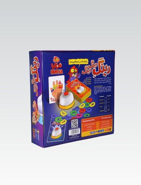 بازی رینگ دینگ دینگ یک بازی فکری و سرعتی است که بر پایه ی دقت و تمرکز طراحی شده. در این بازی بازیکنان باید با استفاده از کش های رنگی، الگوهای نشان داده شده روی کارت ها را روی انگشتان خود بسازند. هر کس زودتر الگو را درست تکمیل کند، زنگ فلزی را به صدا در می آورد و کارت را به عنوان امتیاز جمع می کند. قوانین ساده و ابزار جذاب باعث می شود کودکان به راحتی وارد جریان بازی شوند. این بازی علاوه بر سرگرمی، به تقویت مهارت هایی مثل تمرکز، سرعت عمل، هماهنگی چشم و دست و حافظه دیداری کمک می کند. درنهایت رینگ دینگ دینگ یک انتخاب عالی برای جمع های خانوادگی و دوستانه است که رقابت سالم و خنده را به همراه دارد.